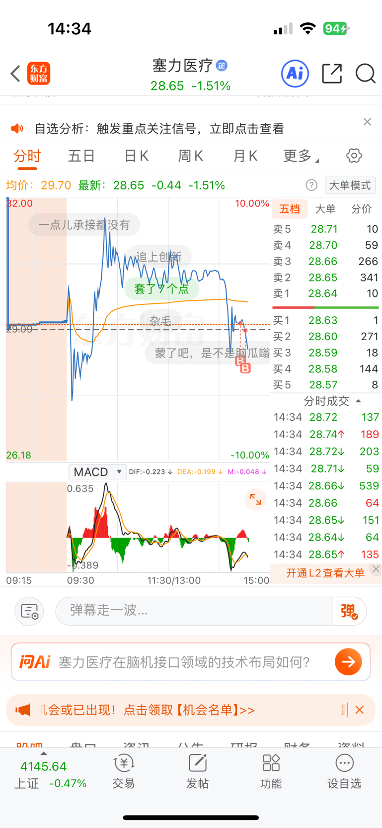 $塞力医疗(SH603716)$ 不好意思大家,我买崩了
