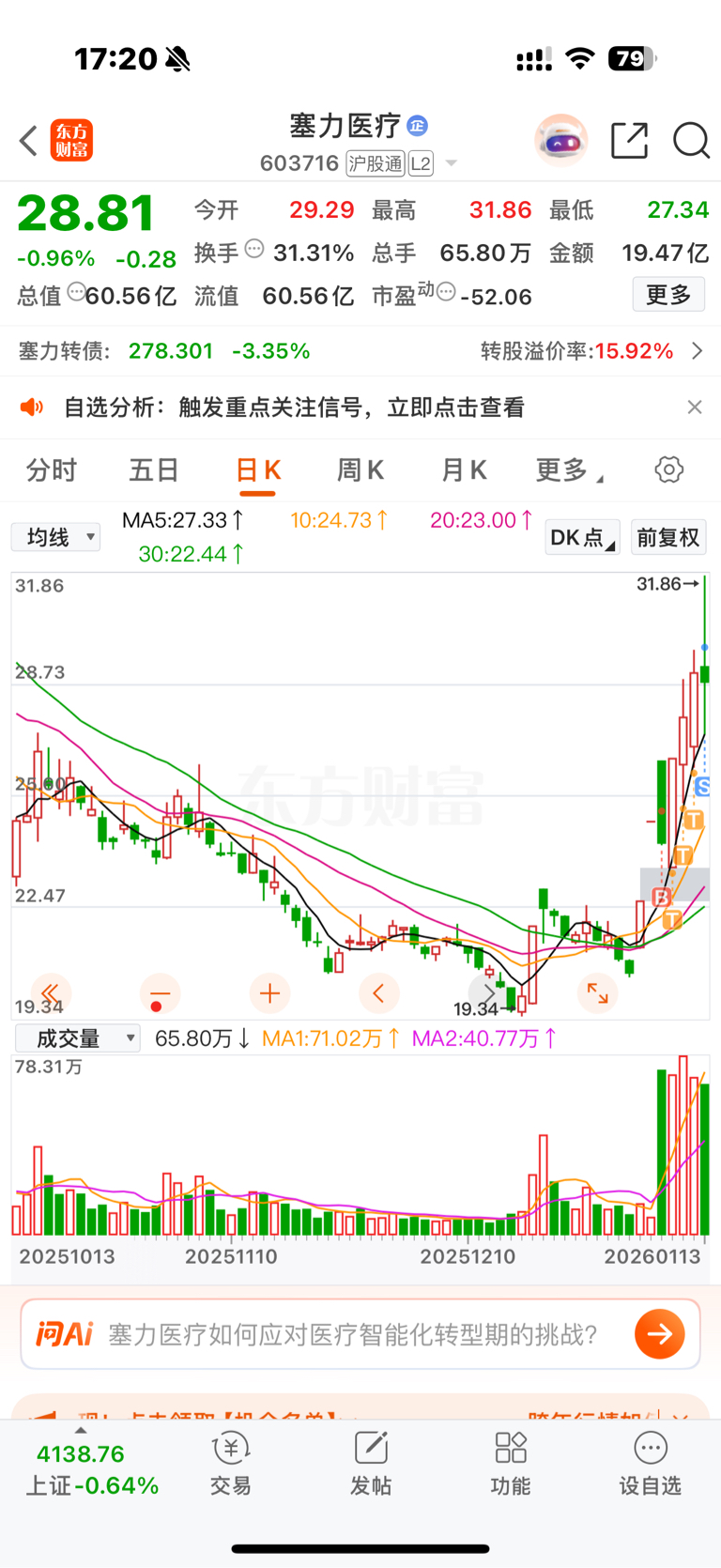 $塞力医疗(SH603716)$ 一看龙虎榜,全是家人们啊,成功逃顶,嘿嘿,赚了不多也就30几个点