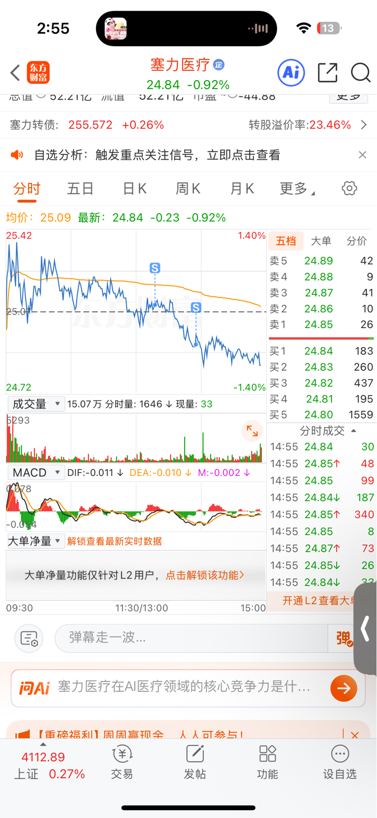 $塞力医疗(SH603716)$ 跑路了,止盈15%,后面再等机会