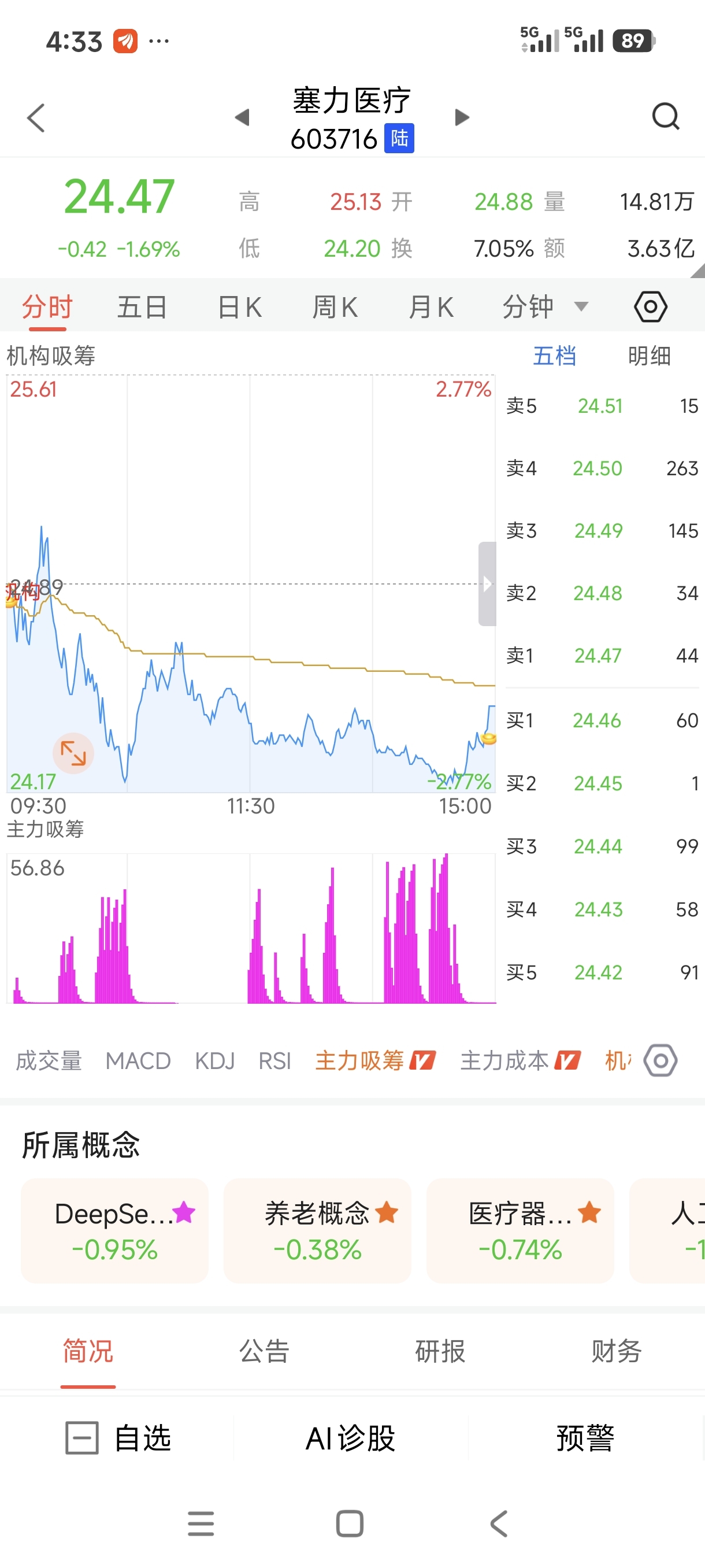 $塞力医疗(SH603716)$ 主力在收集筹码,干!