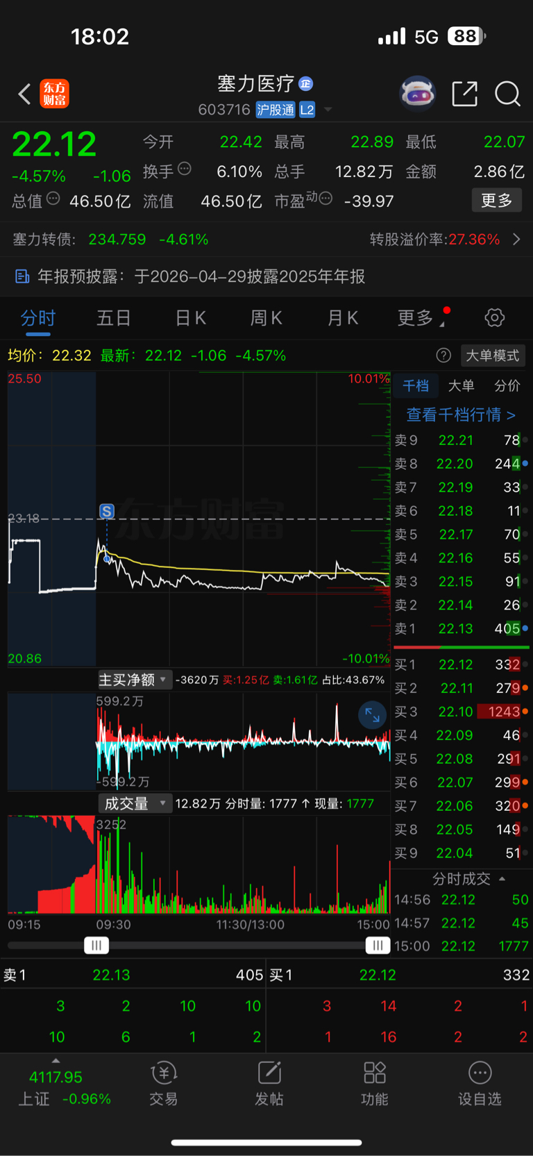 $塞力医疗(SH603716)$ 亏21个点,实在受不了割了