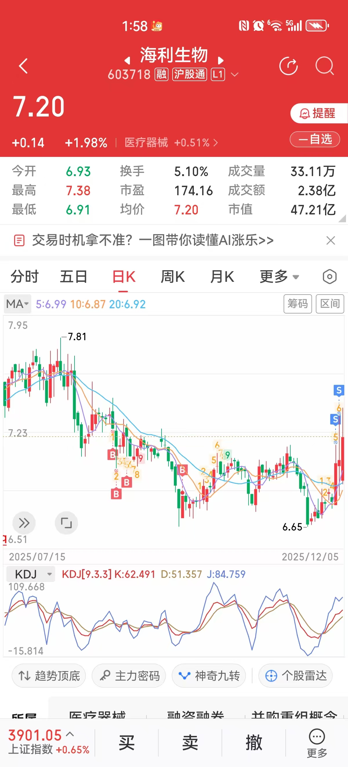 $海利生物(SH603718)$ 回本就卖了,今天早上买了同花顺,随随便便一涨都比趴在这里强。