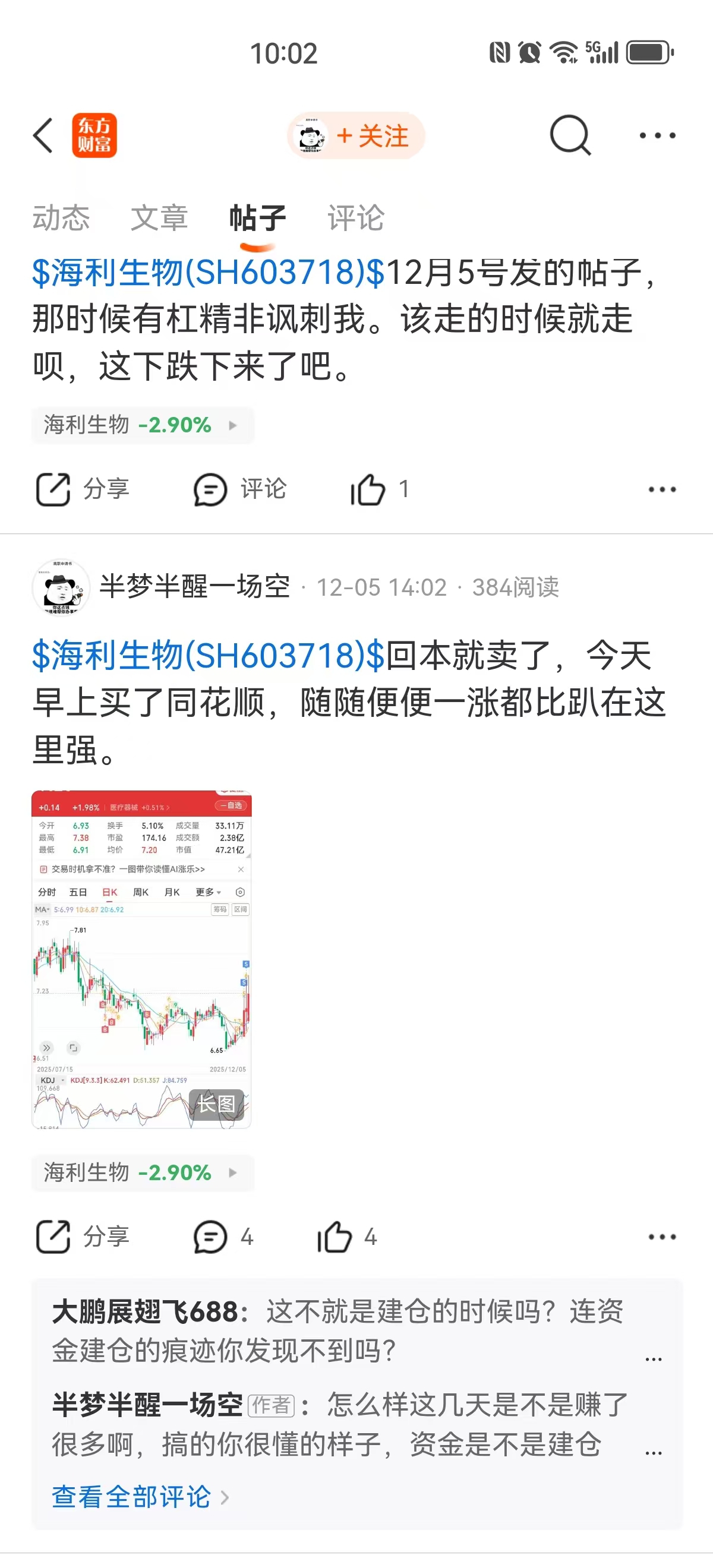 $海利生物(SH603718)$ 12月5号就说了还被抬杠的在那边阴阳怪气的。看这五天下来多少点了。坑不坑吧,心疼不心疼吧。