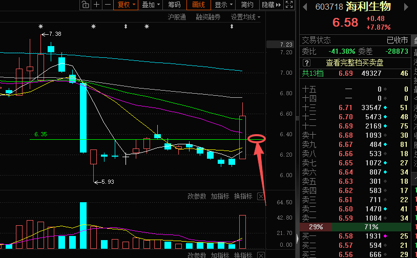 推演:明天短线回踩到6.35左右我计划入场!!