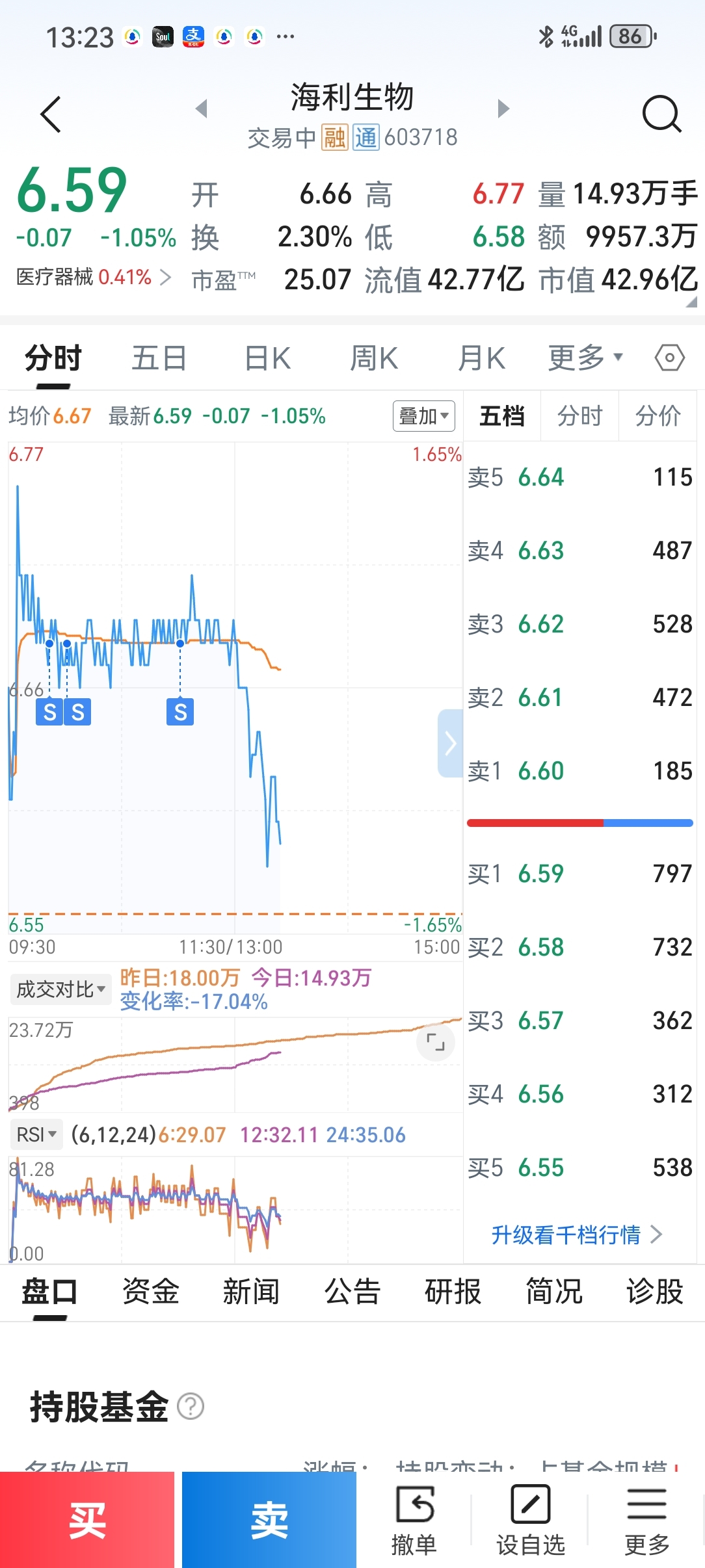 $海利生物(SH603718)$ 早上预测午盘下杀先跑,等会合适在做个T