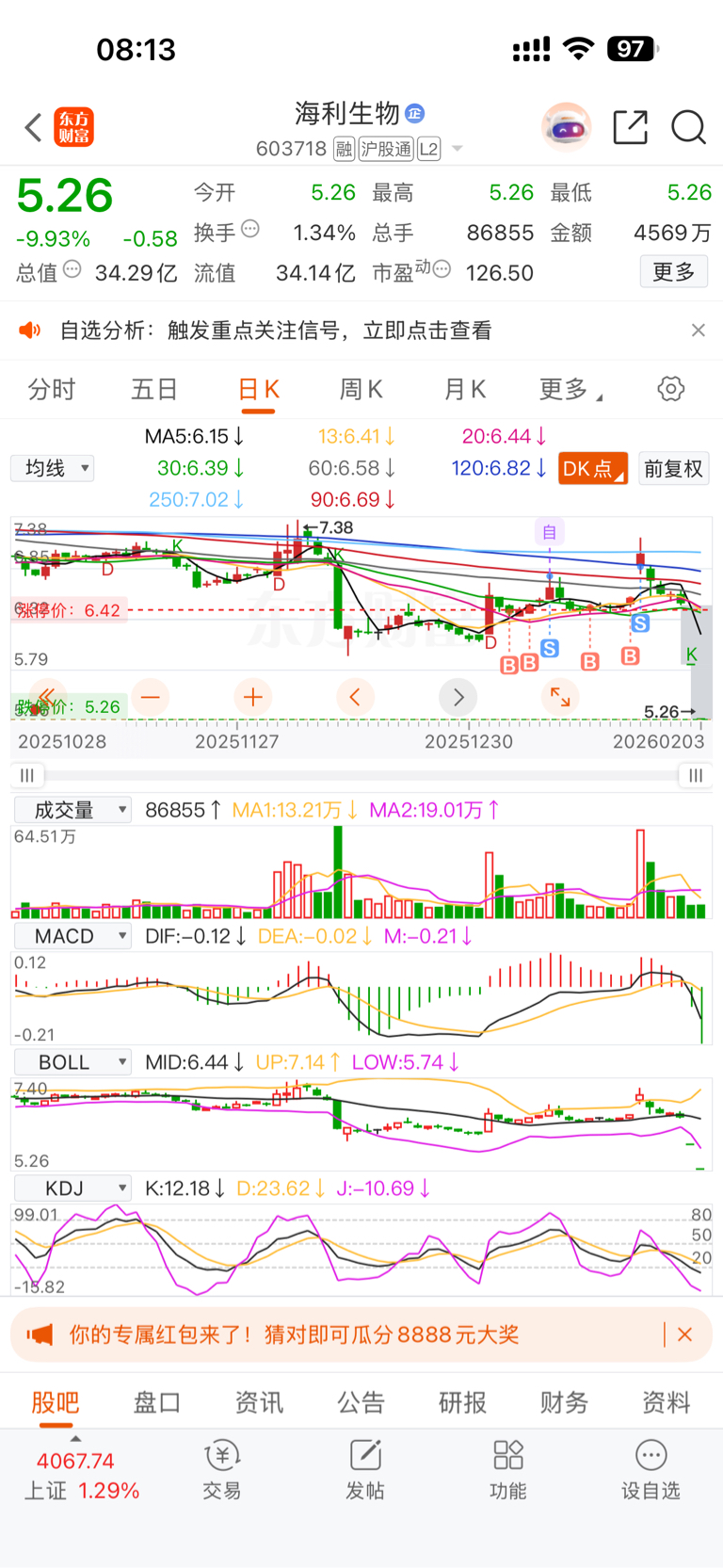 $海利生物(SH603718)$ 跑的多么及时…