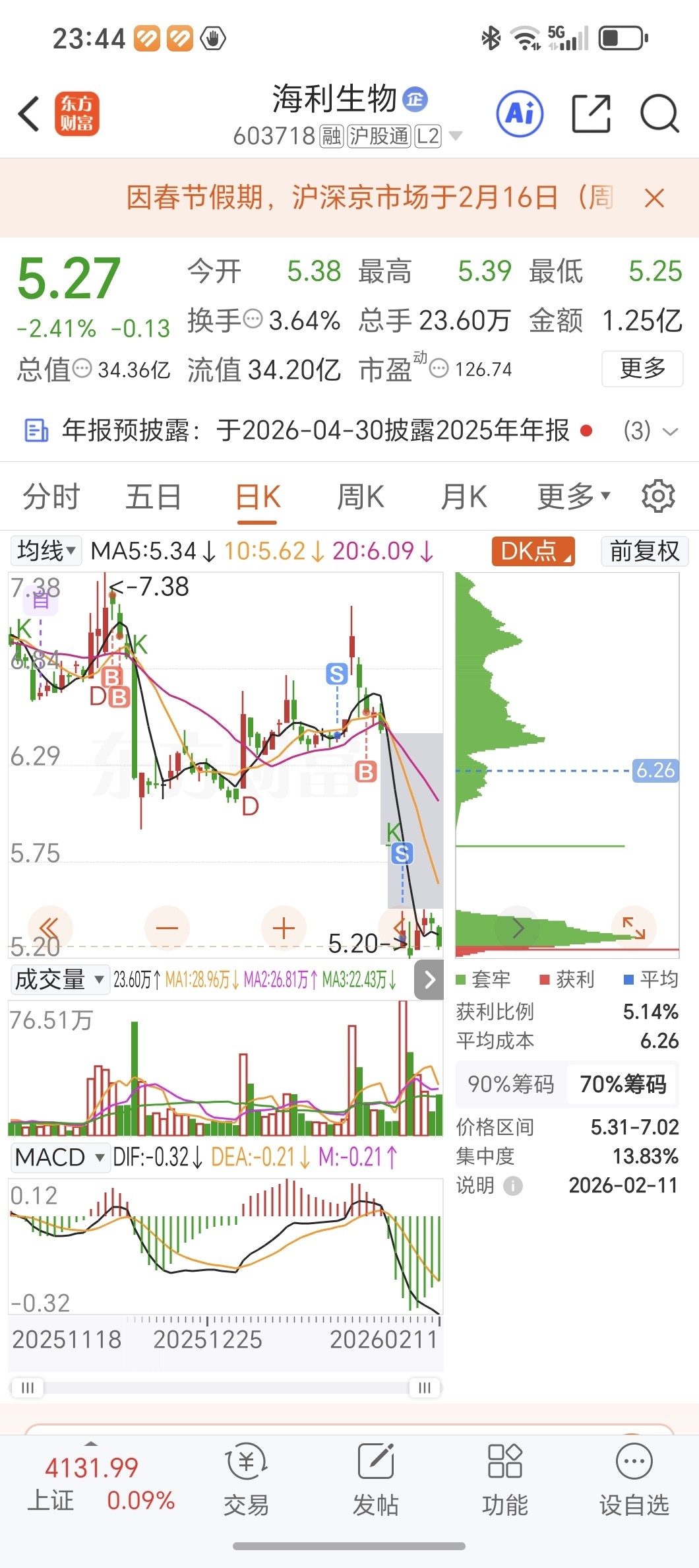 $海利生物(SH603718)$ 认输了