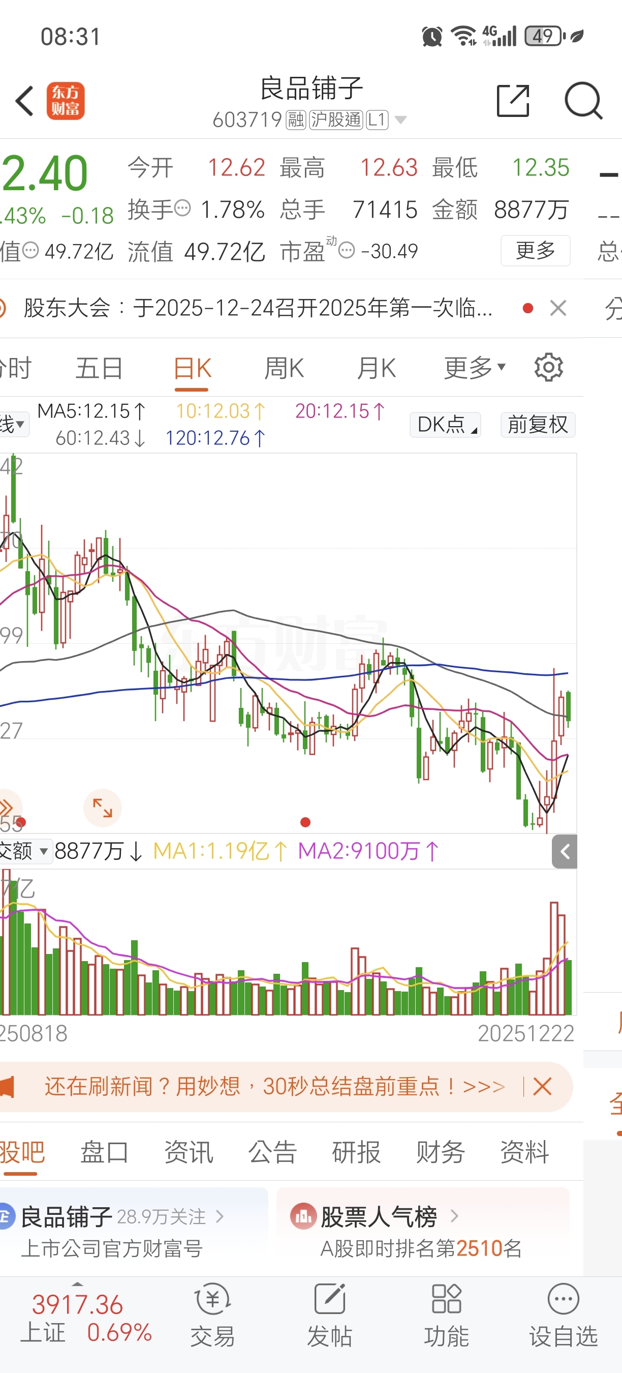 $良品铺子(SH603719)$ 还在下跌趋势中,估计要到元旦后了,我先挂个11.30的条件单