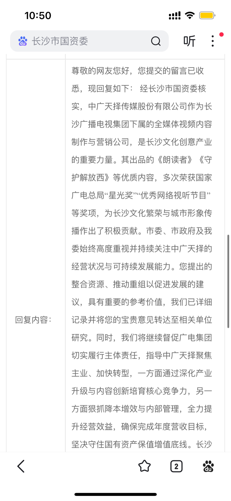 国资委说了,市委市政府高度重视并持续关注中广天择的近况,不排除使用重组和整合资源