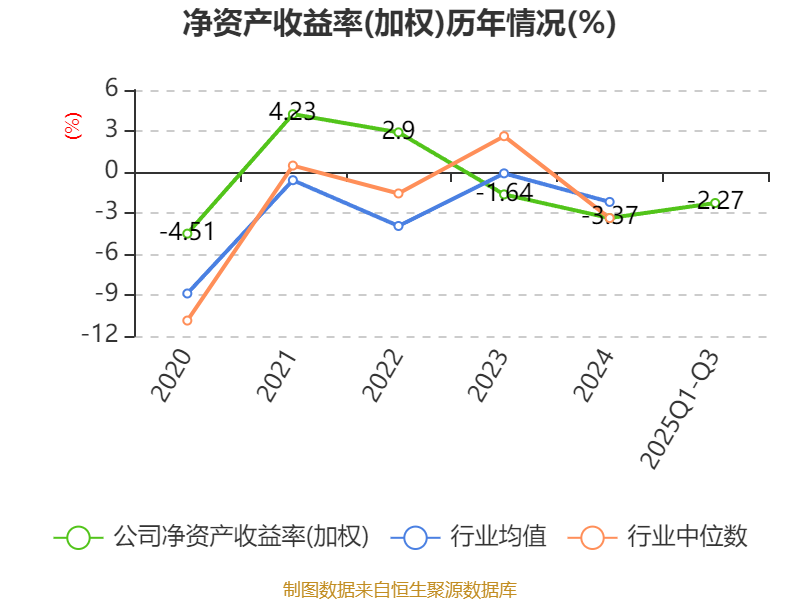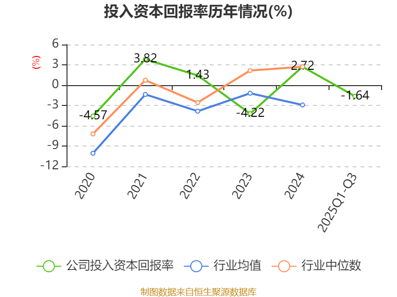 盈利能力方面, 2025年前三季度公司加权平均净资产收益率为-2.27%,同比下降0.03个百分点。公司2025年前三季度投入资本回报率为-1.64%,较上年同期下降2.11个百分点。