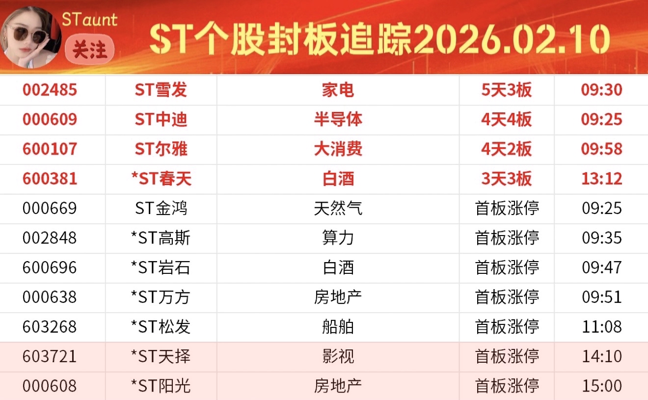 ST个股封板追踪D