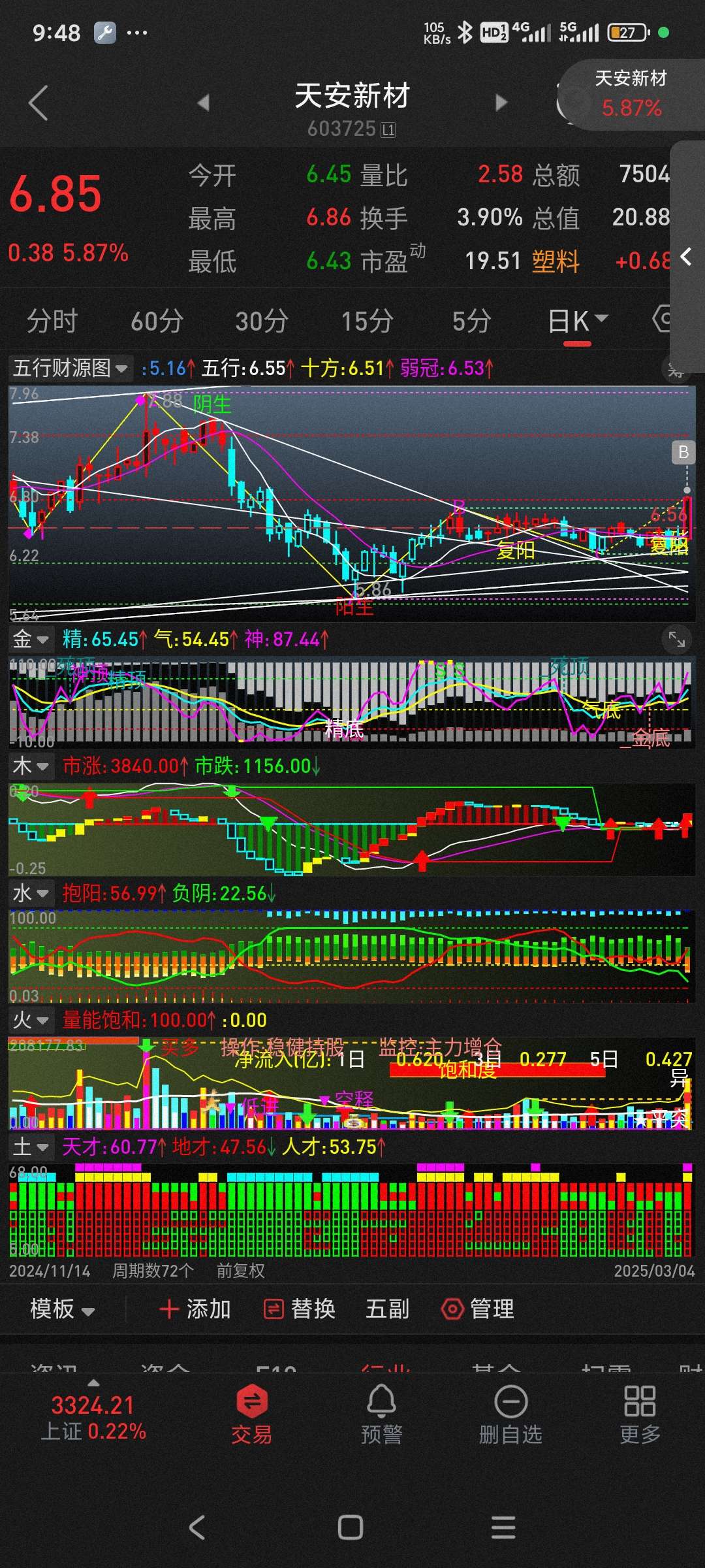$天安新材(SH603725)$ 在来一两根阳线就好了