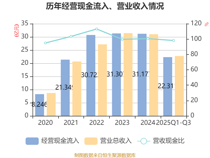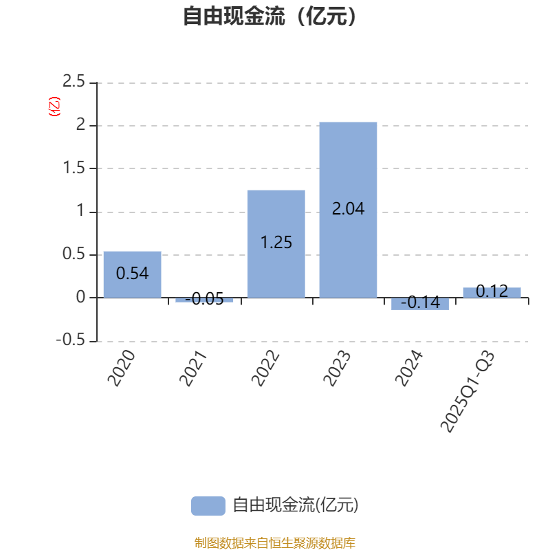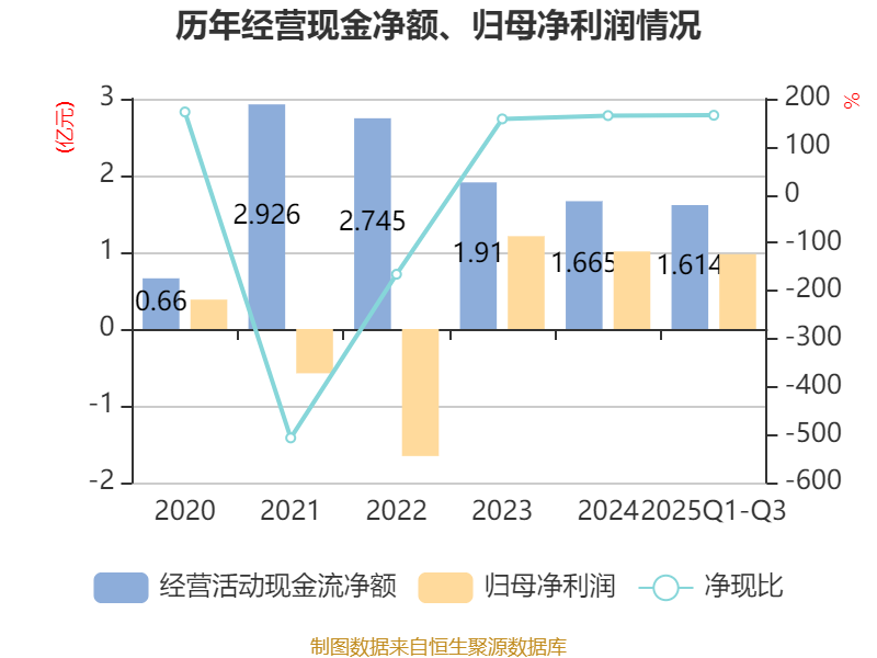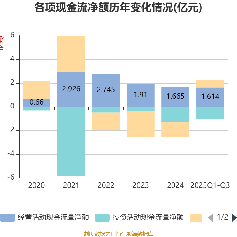2025年前三季度,公司经营活动现金流净额为1.61亿元,同比下降8.03%;筹资活动现金流净额6503.63万元,同比增加1.69亿元;投资活动现金流净额-1.01亿元,上年同期为-1.33亿元。