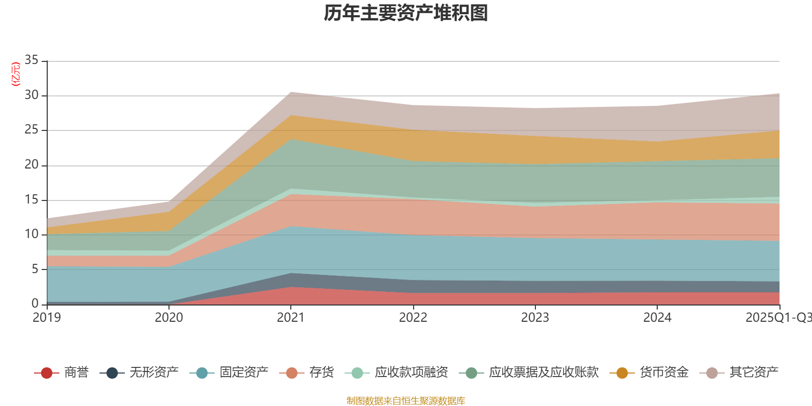 资产重大变化方面,截至2025年三季度末,公司货币资金较上年末增加41.42%,占公司总资产比重上升3.26个百分点;应收款项融资较上年末增加209.44%,占公司总资产比重上升2.07个百分点;交易性金融资产合计较上年末增加110.07%,占公司总资产比重上升1.71个百分点;固定资产较上年末减少1.92%,占公司总资产比重下降1.61个百分点。