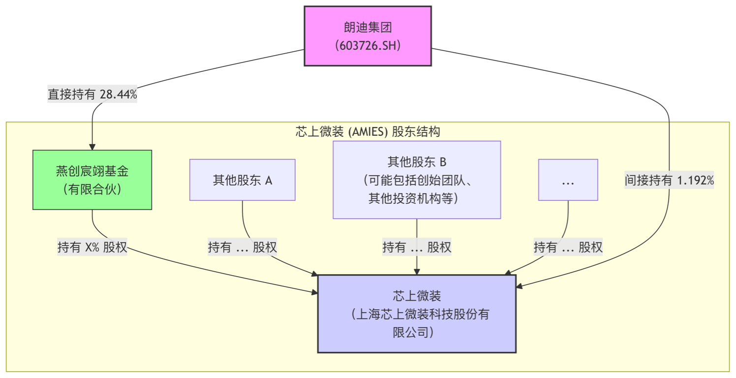 $朗迪集团(SH603726)$ 经天眼查合企查查发现:朗迪集团通过持有28.44%燕创宸翊基金间接持有芯上微装1.192%股份