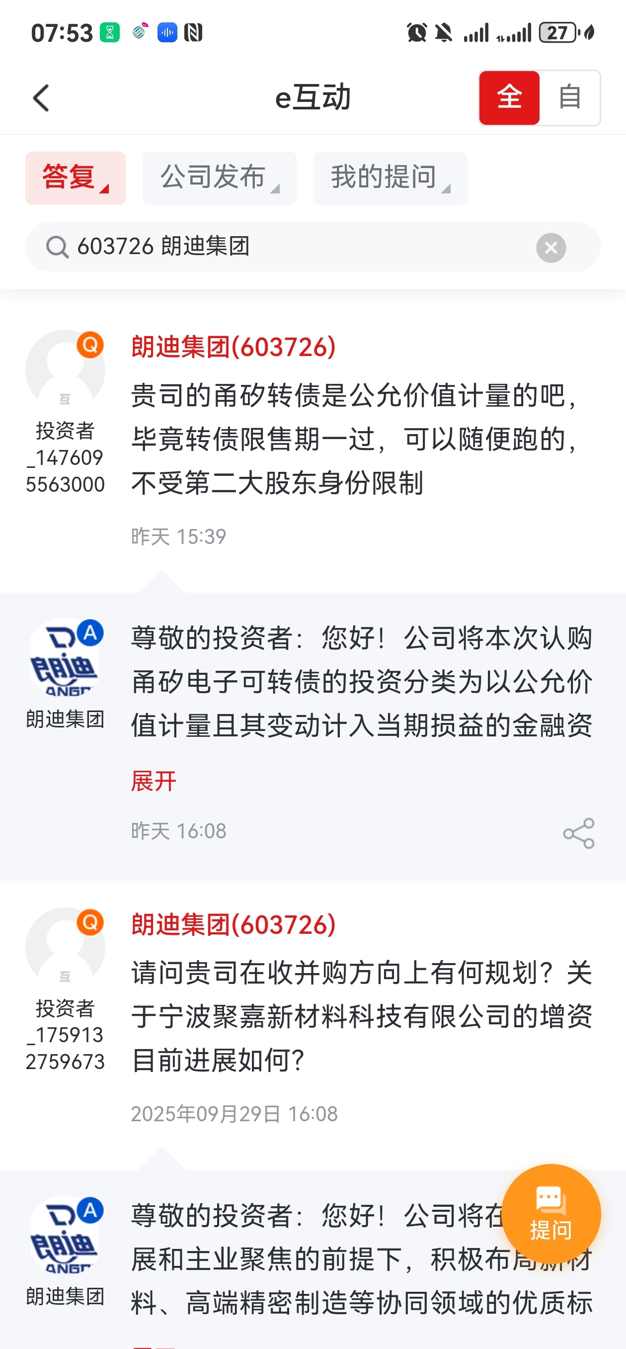 $朗迪集团(SH603726)$ 当天的提问,当天就回复,厉害了我的哥公司把投资者需要的全给了,三季报大幅增长也告诉咱们了!干吧!