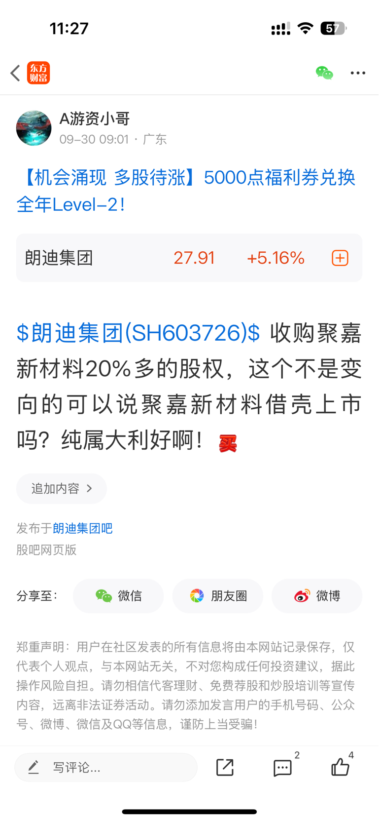 温馨提示: 1.根据《证券法》规定,禁止编造、传播虚假信息或者误导性信息,扰乱证券市场;2.用户在本社区发表的所有资料、言论等仅代表个人观点,与本网站立场无关,不对您构成任何投资建议。用户应基于自己的独立判断,自行决定证券投资并承担相应风险。《东方财富社区管理规定》