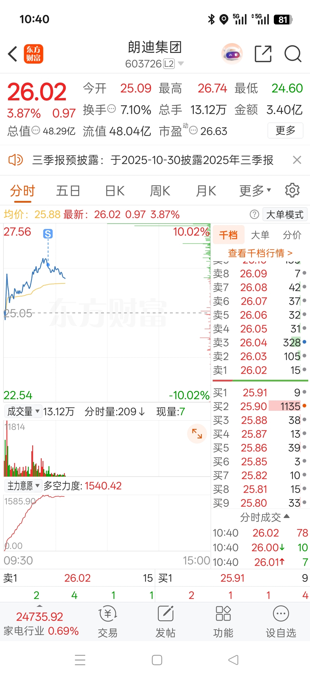 $朗迪集团(SH603726)$ 昨天买的小赚886,留下的慢慢发财,这个庄太坏了涨跌波动太大了