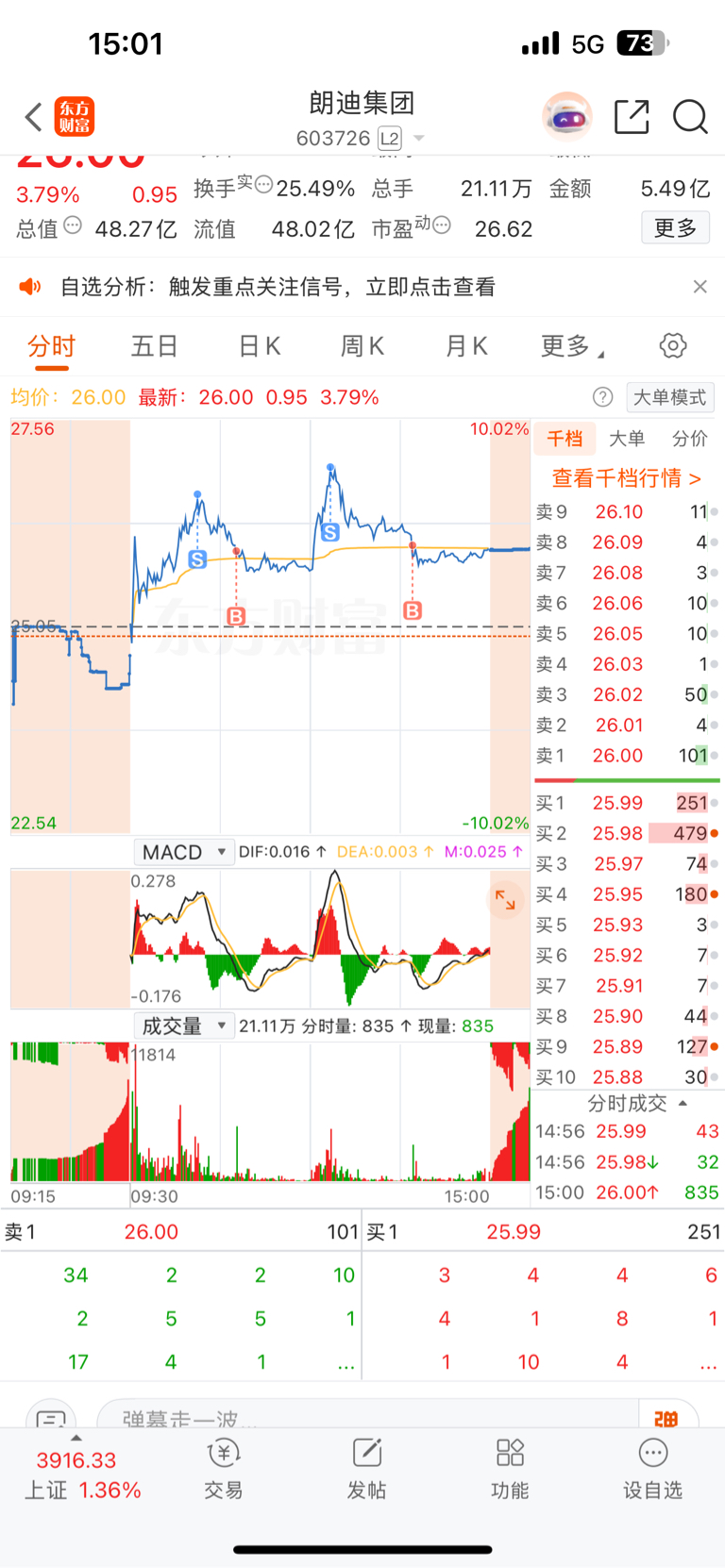 $朗迪集团(SH603726)$ T了个寂寞,第二次买入没注意金额不小心买多了