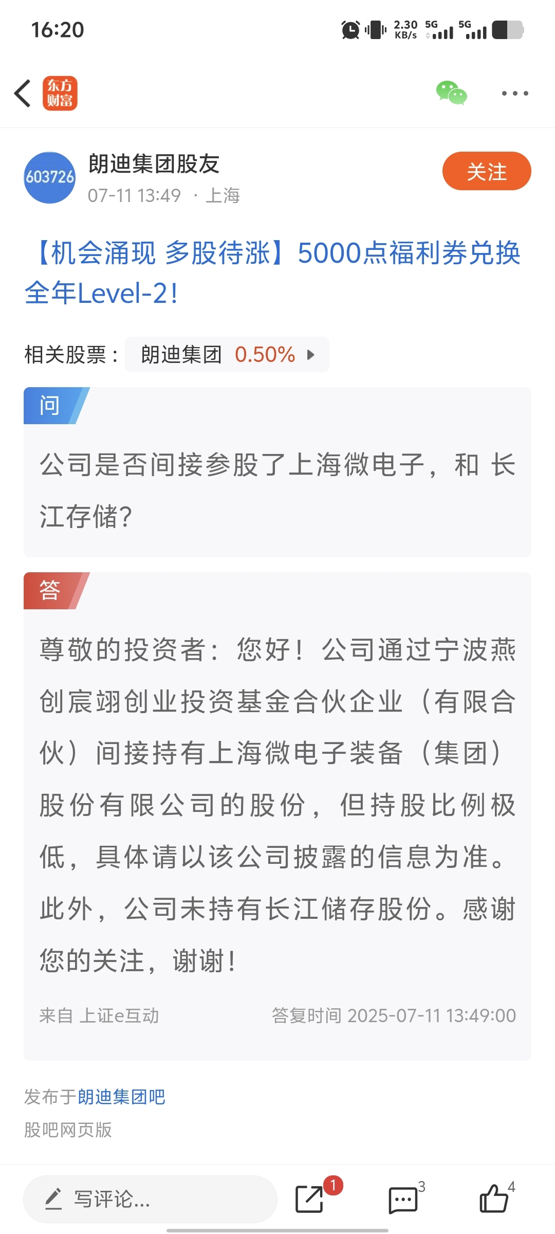 $朗迪集团(SH603726)$ 持有上海微电子的股份,他是自己承认过的。