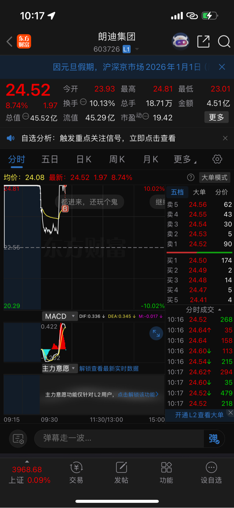 $朗迪集团(SH603726)$ 看见又回封打板进的,死透了啊