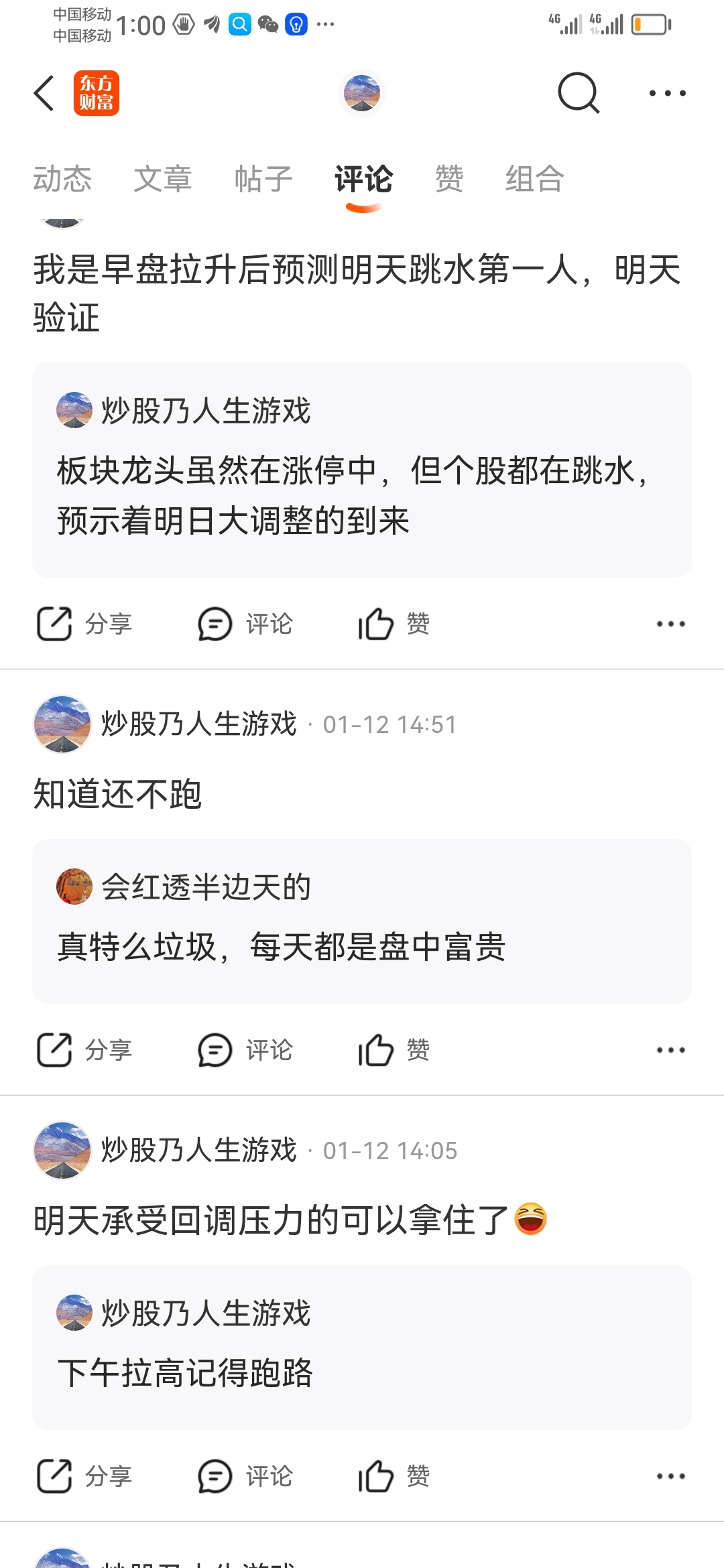 温馨提示: 1.根据《证券法》规定,禁止编造、传播虚假信息或者误导性信息,扰乱证券市场;2.用户在本社区发表的所有资料、言论等仅代表个人观点,与本网站立场无关,不对您构成任何投资建议。用户应基于自己的独立判断,自行决定证券投资并承担相应风险。《东方财富社区管理规定》