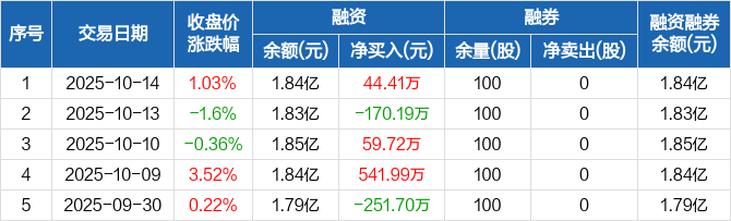 博迈科:融资净买入44.41万元,融资余额1.84亿元(10-14)