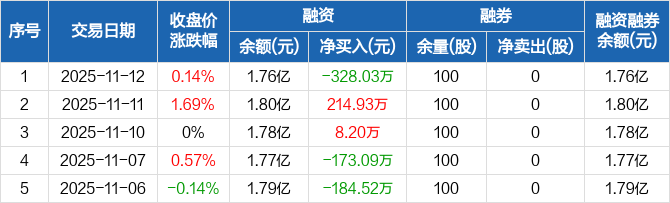 博迈科:融资净偿还328.03万元,融资余额1.76亿元(11-12)