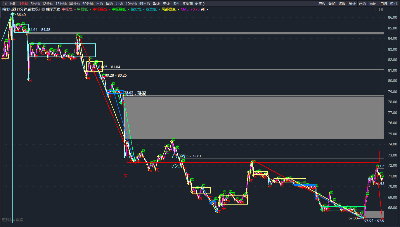 1分钟周期看走势:今天上午谁追涨必被套牢!今天的操作是上涨抛售!