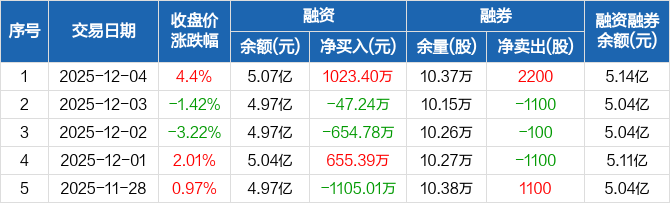 鸣志电器:融资净买入1023.4万元,融资余额5.07亿元(12-04)