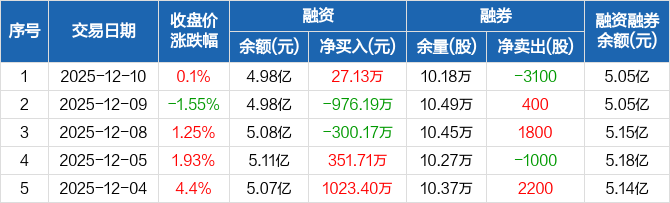 鸣志电器:融资净买入27.13万元,融资余额4.98亿元(12-10)