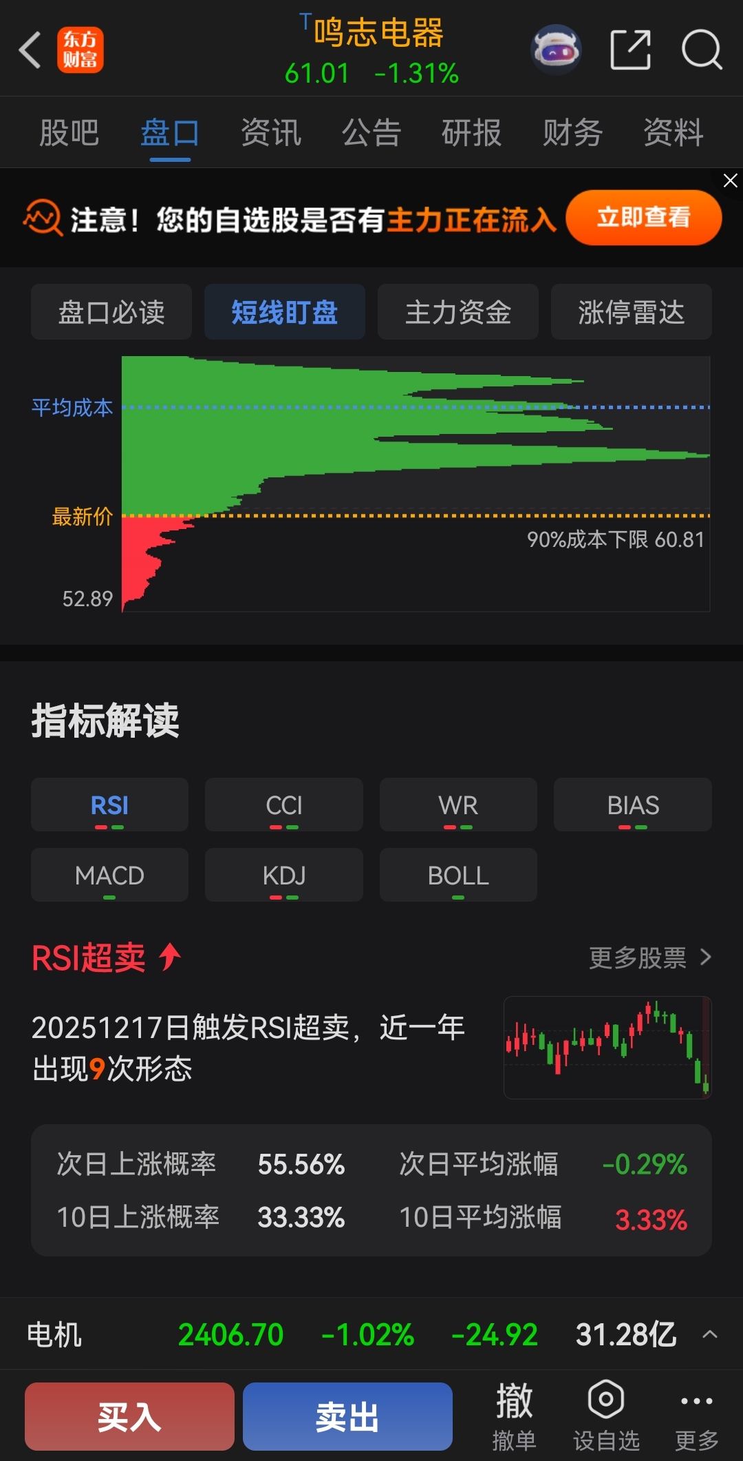 $鸣志电器(SH603728)$ RSl超卖,反弹一触即发