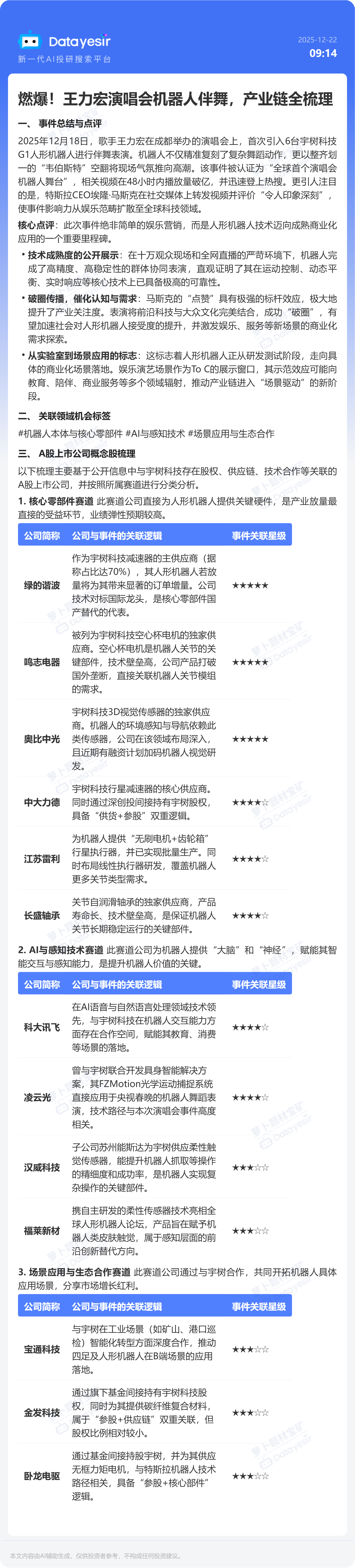 燃爆!王力宏演唱会机器人伴舞,产业链全梳理