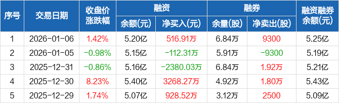 鸣志电器:融资净买入516.91万元,融资余额5.2亿元(01-06)