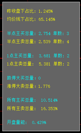 分时页面的多空力量对比:可以看到,无论是半点大卖单还是1点大卖单,还是所有主卖都很大,显然要卖出止盈