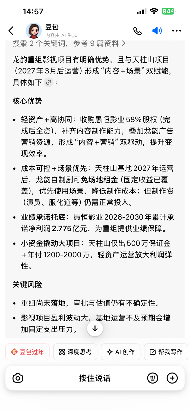 $龙韵股份(SH603729)$ 还有我告诉你们大家,这个天柱山旅游项目才是这个票真实的炒作方向,收购影业项目,就是配合明年的基地正式运营,这一套组合拳下来你们自己去品,这个重组可不是忽悠,这是布局往着预期的方向走,市场炒股就是炒预期,只要没有兑现就一直会炒作下去,也就是说,每次回踩都是你上车的机会,这个票不翻个几倍,都对不起这个故事