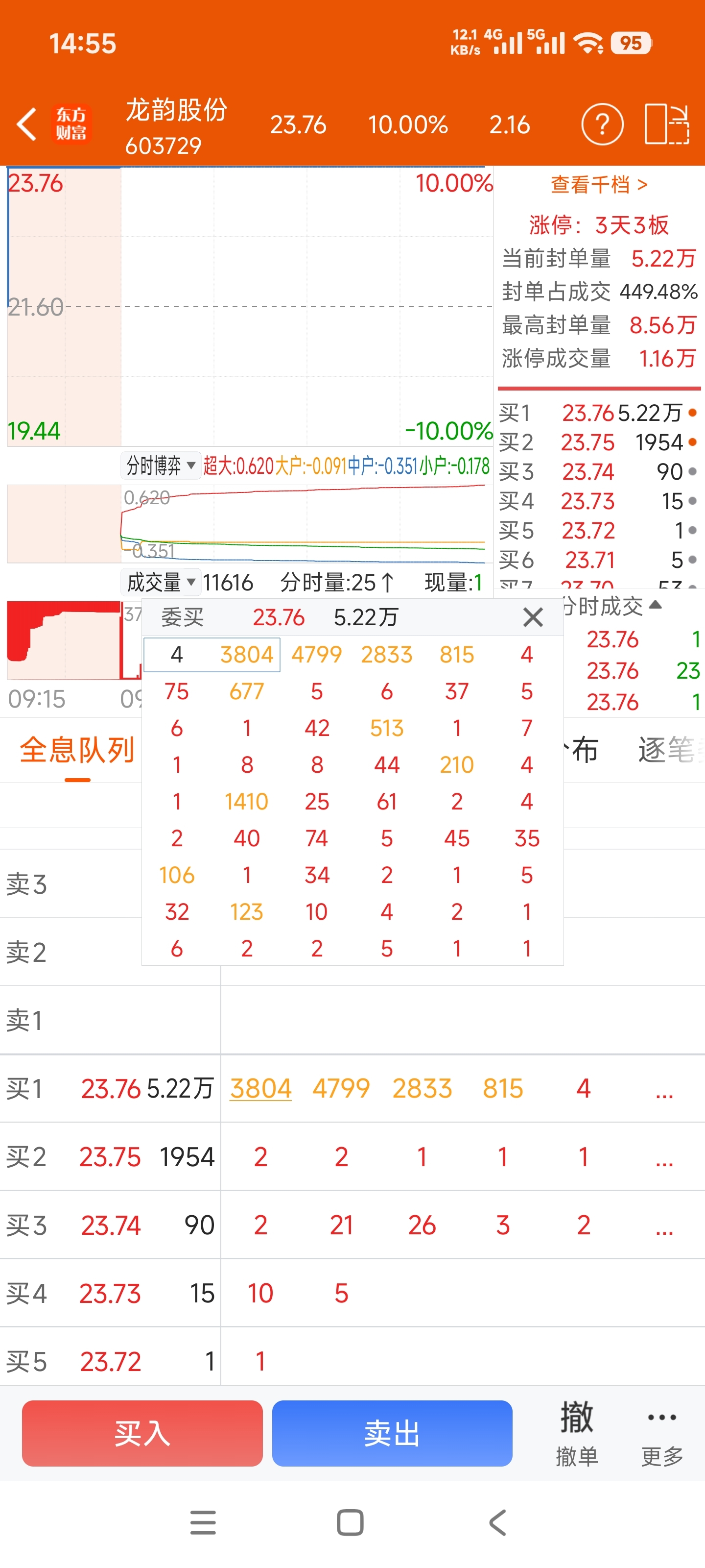 14:56:51秒,排我前面的4799,2833都已撤单,集合竞价还是没排到我,
