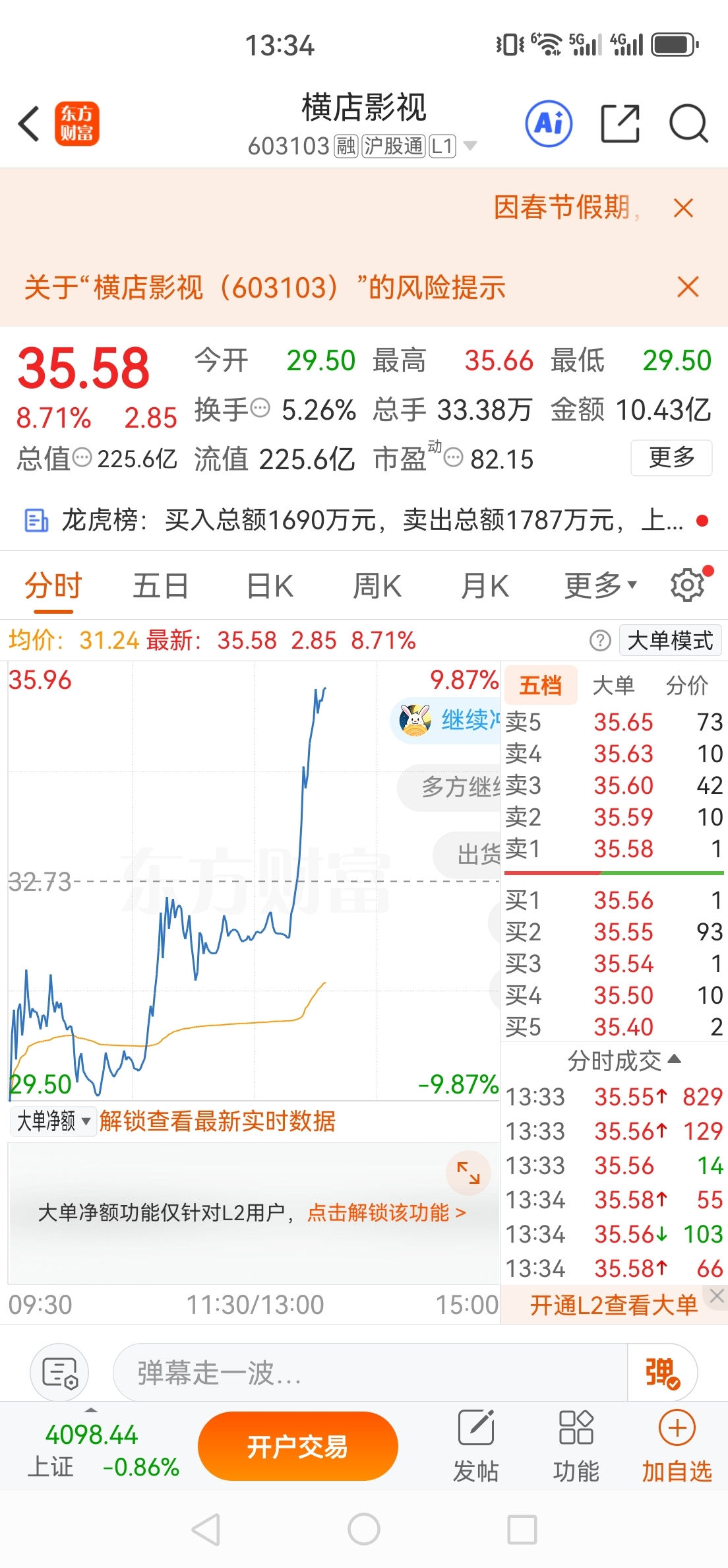 $龙韵股份(SH603729)$ 19个点到手了,还好我早上全仓买的横店