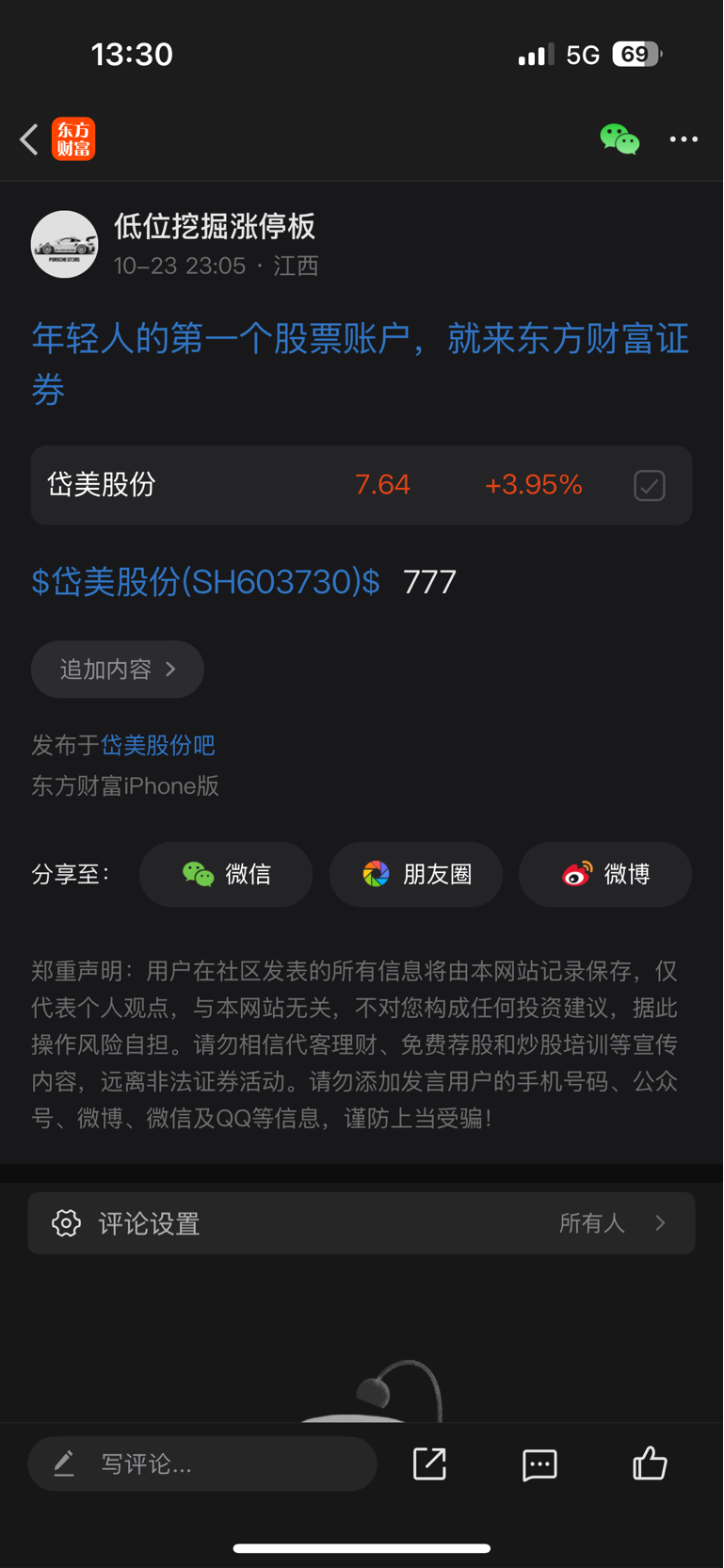 温馨提示: 1.根据《证券法》规定,禁止编造、传播虚假信息或者误导性信息,扰乱证券市场;2.用户在本社区发表的所有资料、言论等仅代表个人观点,与本网站立场无关,不对您构成任何投资建议。用户应基于自己的独立判断,自行决定证券投资并承担相应风险。《东方财富社区管理规定》