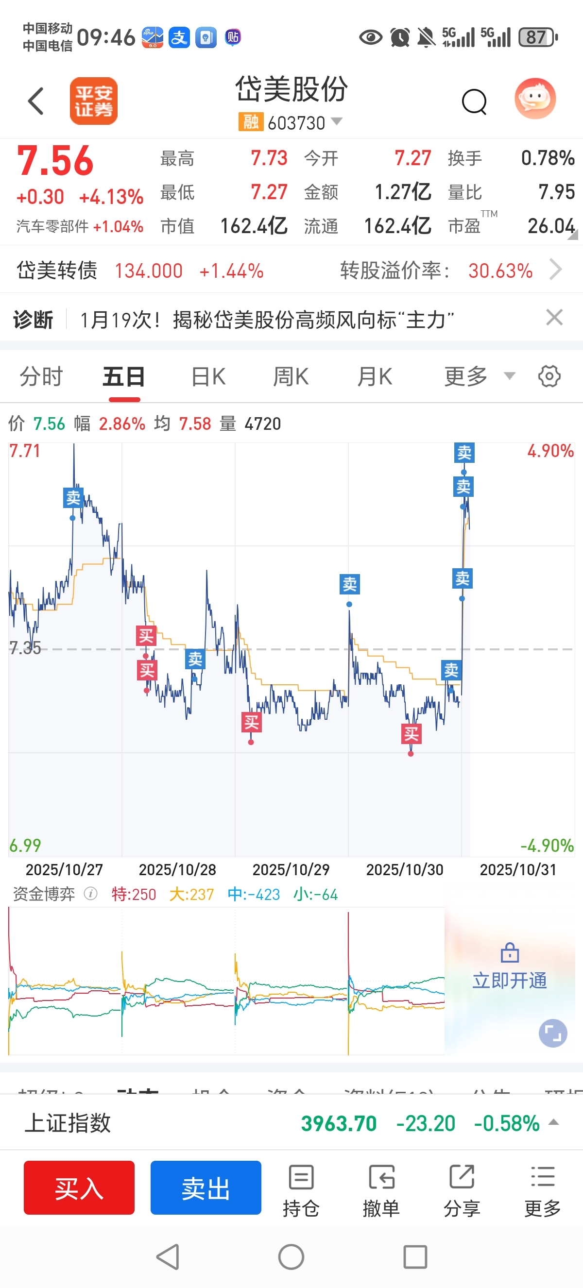 $岱美股份(SH603730)$  卖了许多,昨天加多了