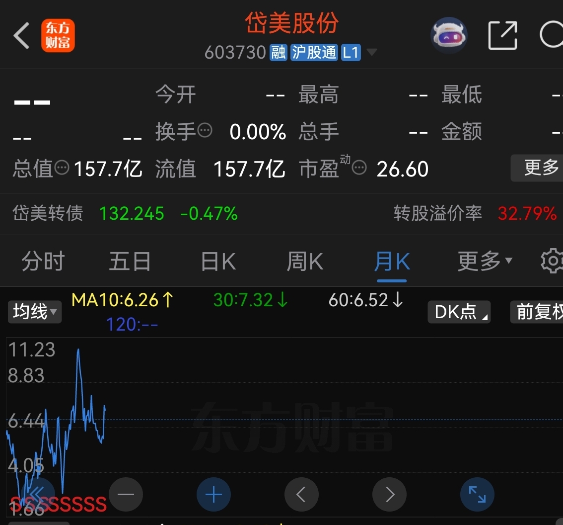 $岱美股份(SH603730)$ 月线看着是短期到头了?