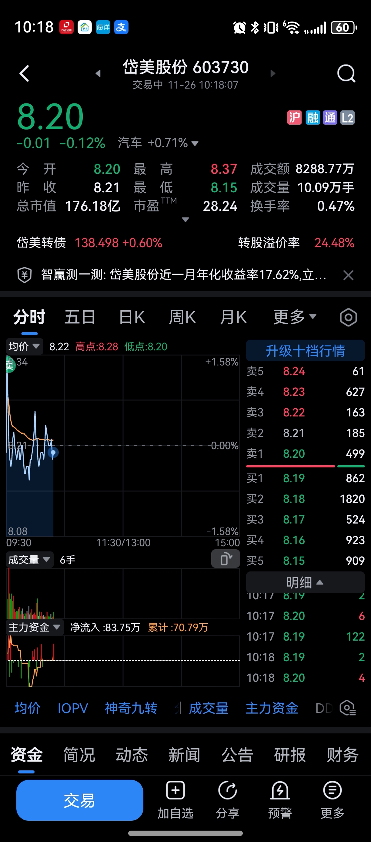 $岱美股份(SH603730)$ 不墨迹,走了!