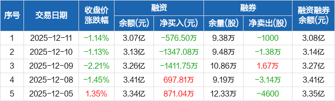 岱美股份:连续3日融资净偿还累计3335.33万元(12-11)
