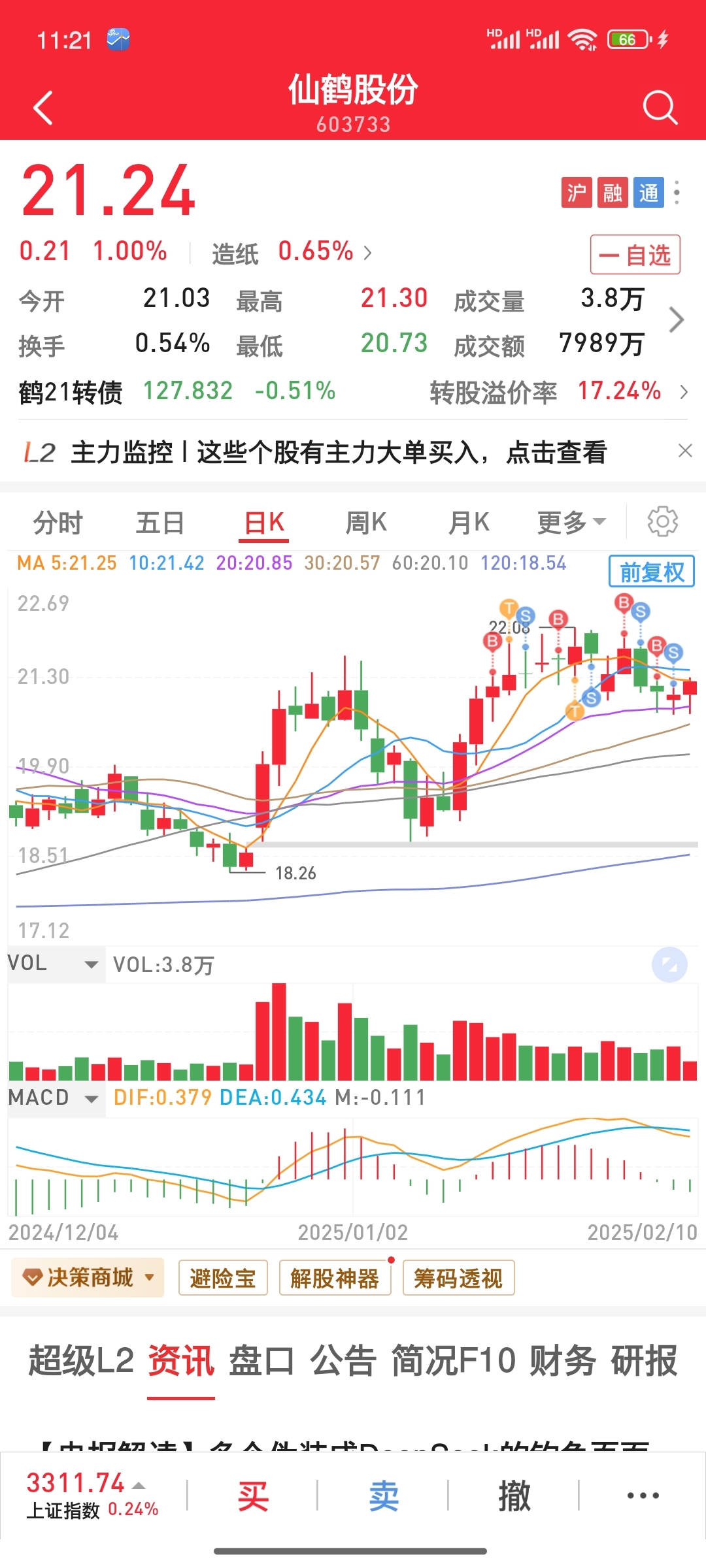 $仙鹤股份(SH603733)$ 今天又买入了。。都给我拿好了,今明不大涨,我倒立吃……。再此立帖为证