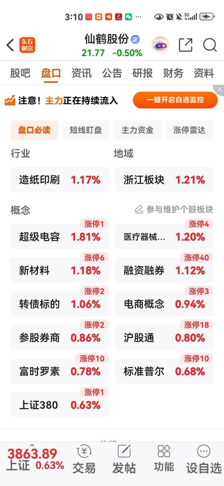 4064家公司上涨,1053家下跌,仙鹤股份隶属板块全红。