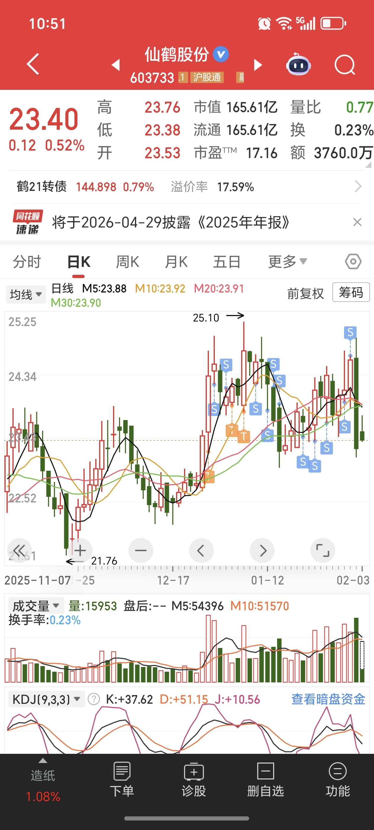 $仙鹤股份(SH603733)$ 它只要涨,我就卖!