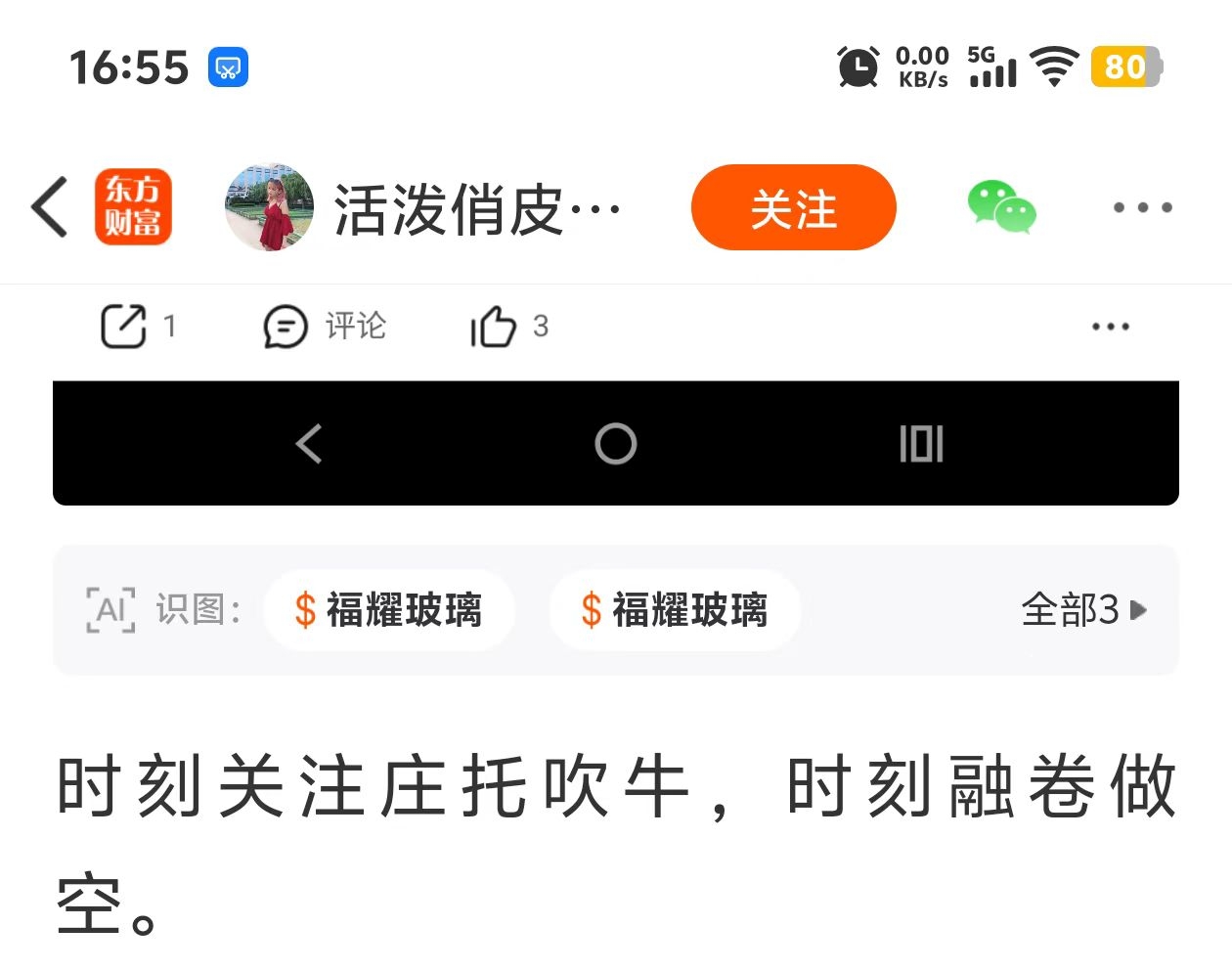 时刻关注这个狗托,他说今天融券做空赚了三个点,我说发持仓出来看看又不敢,真的笑死