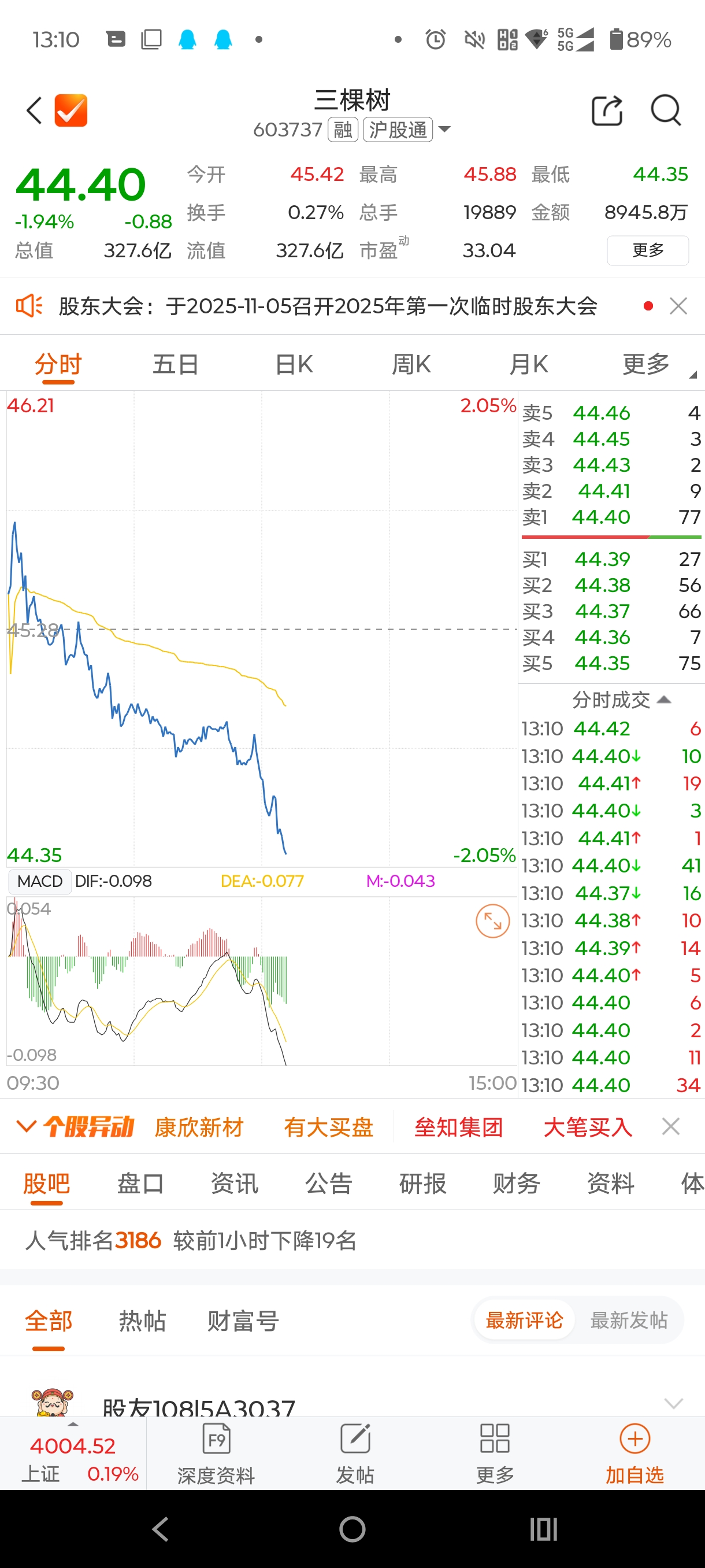 $三棵树(SH603737)$ 三棵树己经融券做空,跟捡钱似的