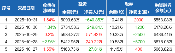 三棵树:融资净偿还640.85万元,融资余额5093.68万元(10-31)