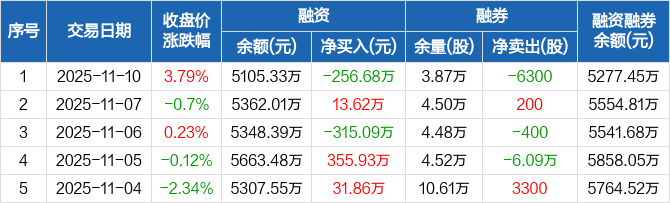 三棵树:融资净偿还256.68万元,融资余额5105.33万元(11-10)